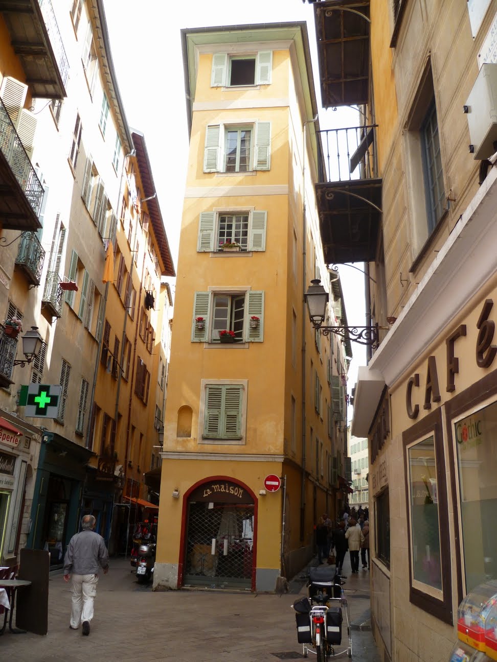 Although this part of Nice can look run down next to it's glitzy,glamerous neighbour Monte Carlo but this is part of it's charm, I adore the brightly colored houses and shutters and the ever so French balconies even when they are adorned with washing makes this place more real and alive compared to Monte Carlo.